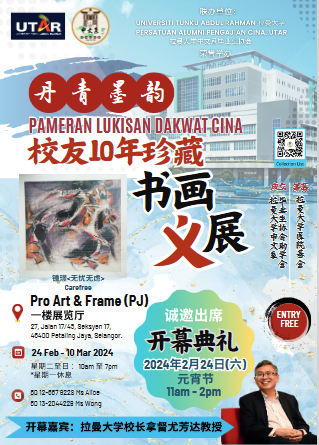 Chinese ink on paper, wood curving & caligraphy is available for sell with purpose of fund raising for UTAR Hospital. The show will be held from 24th Feb – 10 March. Opening Hours : Tue – Sun / 10am – 7pm, close Monday . Further info, please kindly contact Mary 0169503168.
