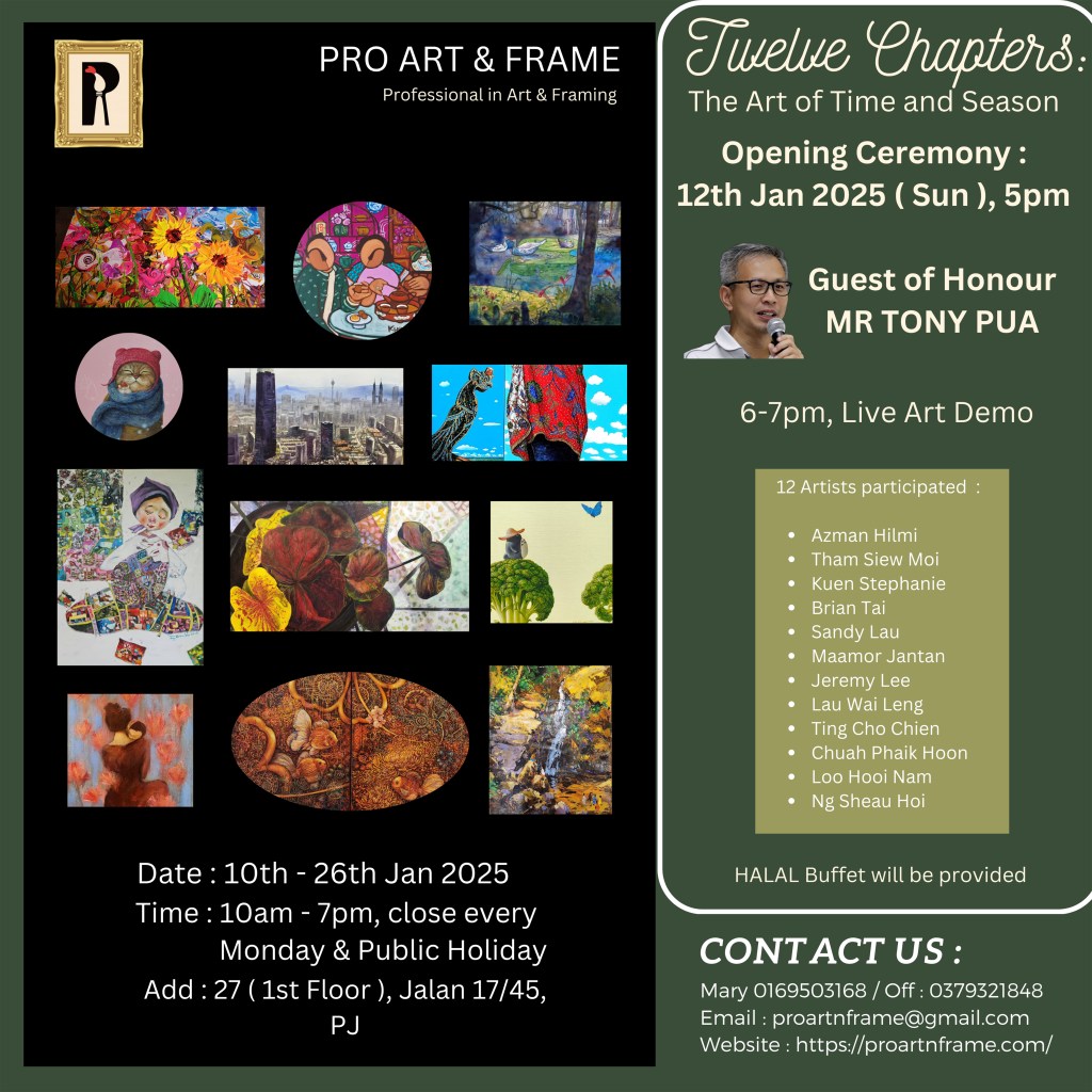📍 Pro Art Gallery, Section 17, PJ , Business hours : 10am-7pm ( Tue – Sun ) , close every Monday & Public Holiday.